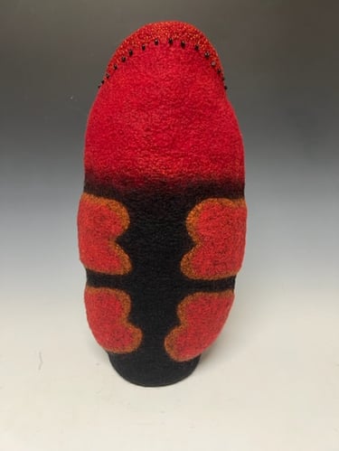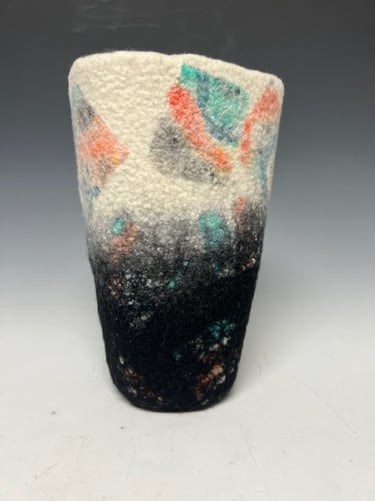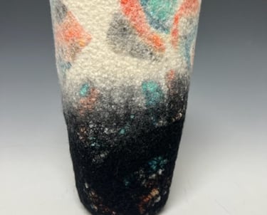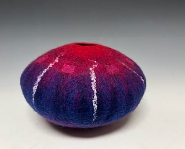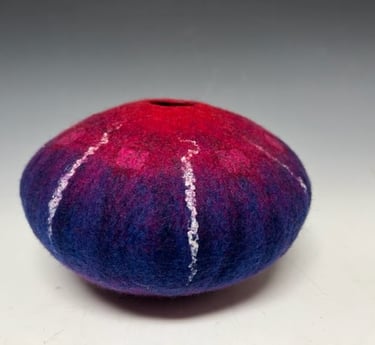 I have been involved with one form of art or another for most of my life. I’ve been a painter, weaver, oriental rug restorer, photographer and now a felt maker. To me they are all interconnected and are all part of one great big creative warehouse where I can go to find inspiration when working on a piece of art.I am happy to reside and work in Midcoast Maine where the artist community is friendly, supportive and quite vibrant!